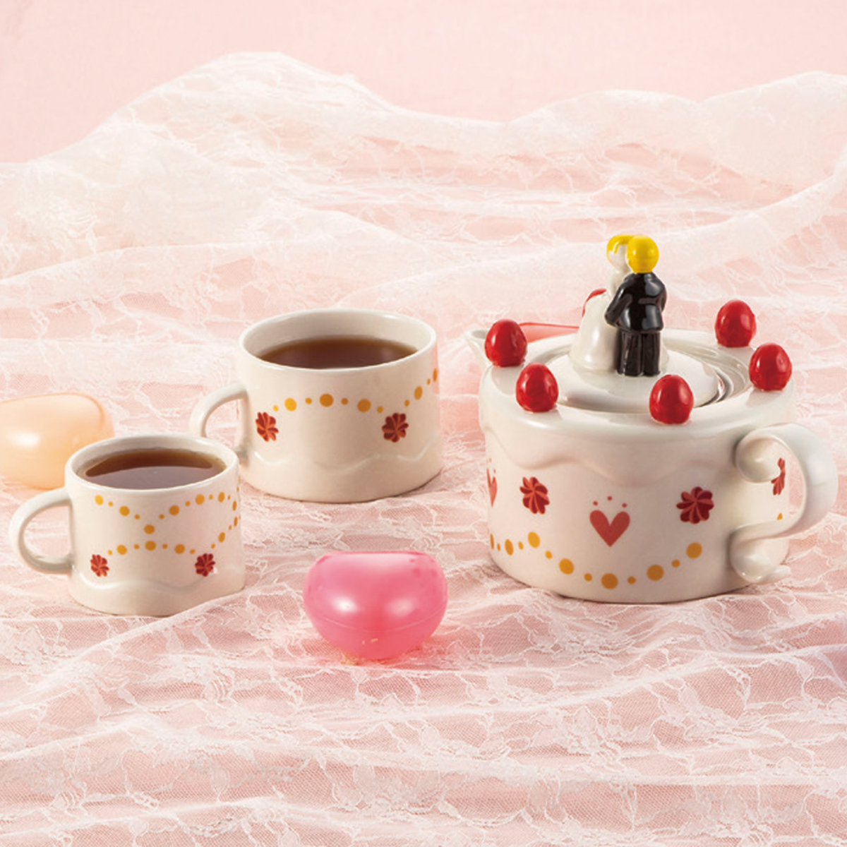 ウエディングケーキをモチーフにしたティーセットです。