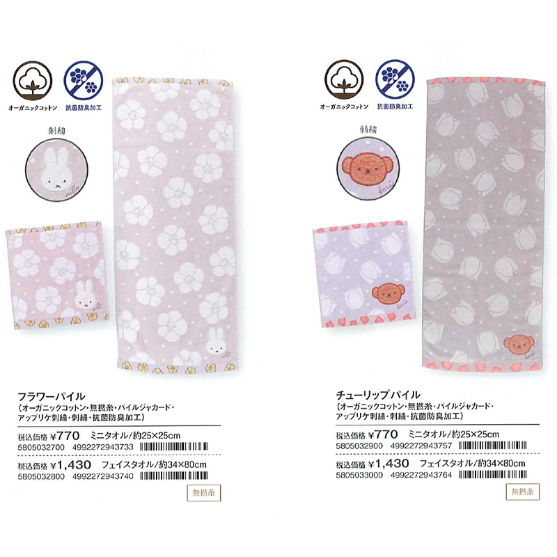 【miffy】ミッフィー フラワーパイル&チューリップパイル ミニタオル&フェイスタオル 防菌防臭加工