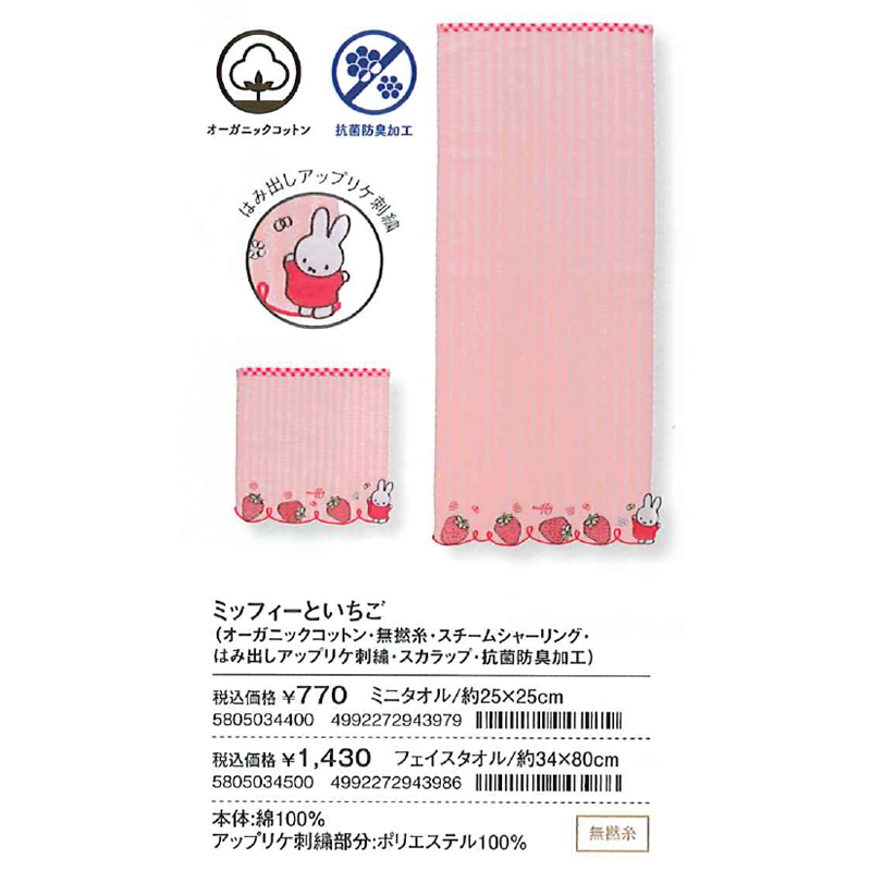 【miffy】ミッフィー ミッフィーといちご ミニタオル&フェイスタオル 防菌防臭加工