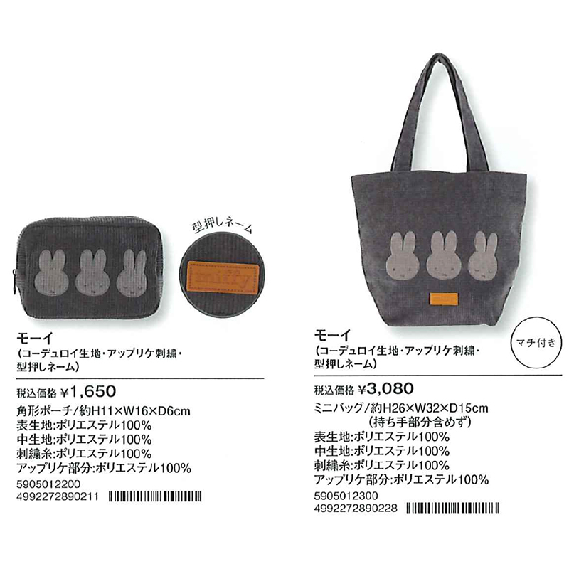 【miffy】ミッフィー モーイ 角形ポーチ&ミニバッグ コーデュロイ