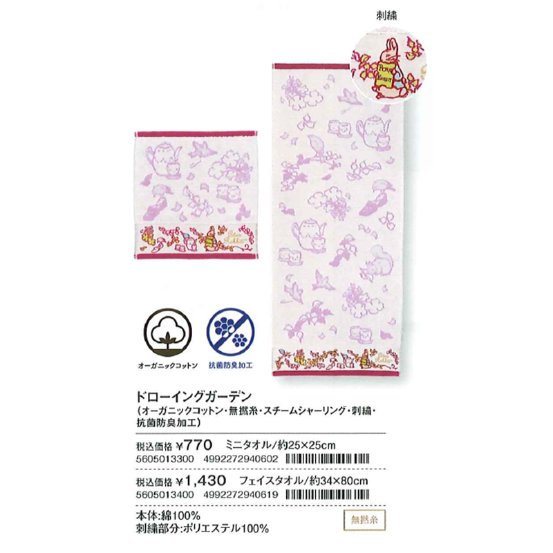【ピーターラビット】ドローイングガーデン ミニタオル&フェイスタオル 防菌防臭加工
