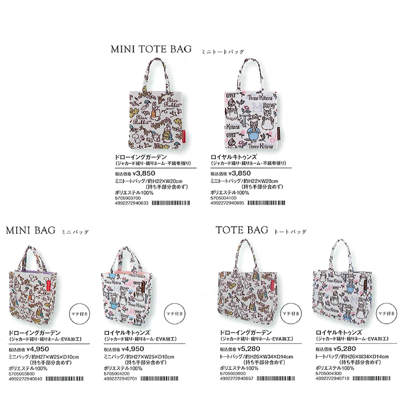 【ピーターラビット】ミニバッグ&トートバッグ ドローイングガーデン&ロイヤルキトゥンズ