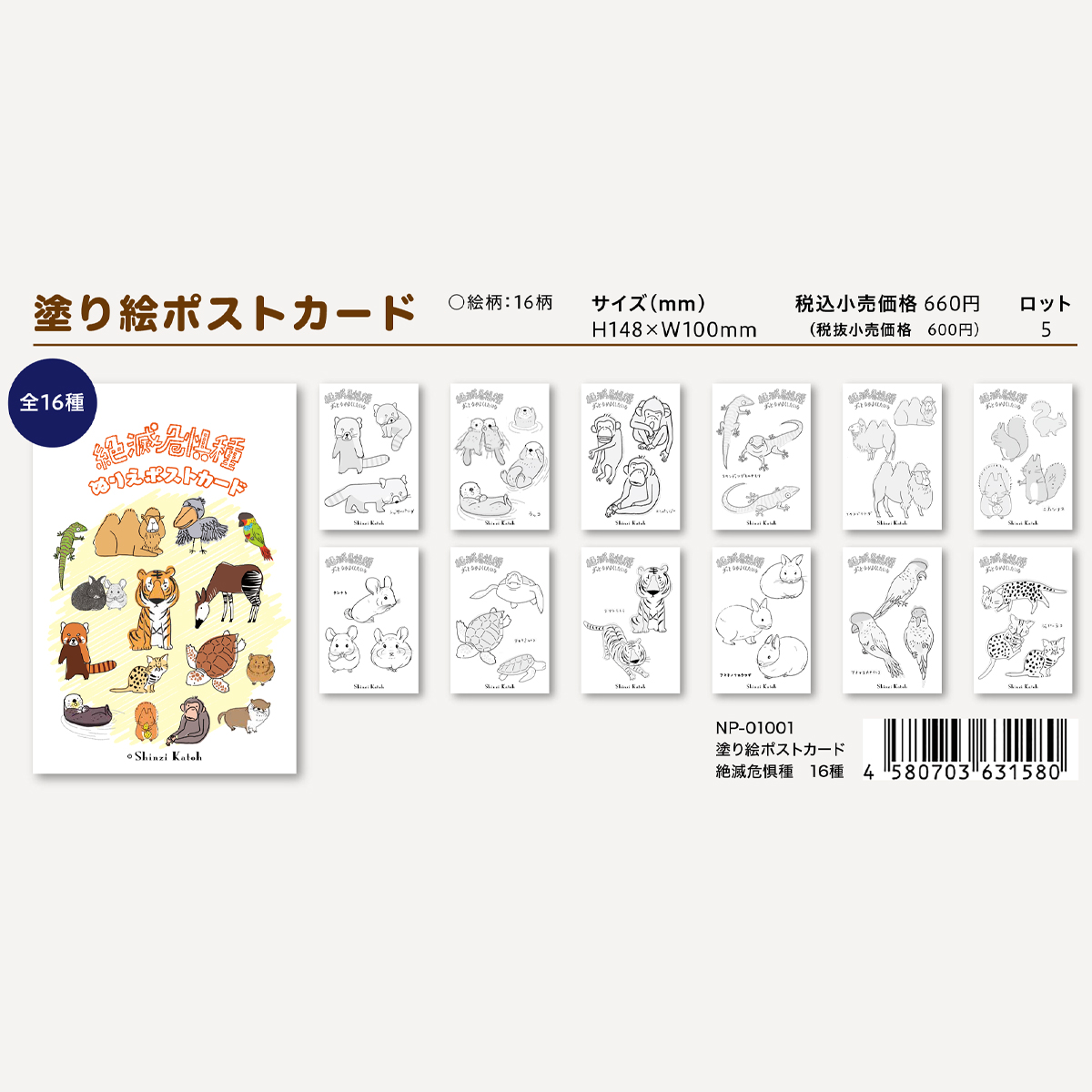 【日本製】塗り絵ポストカード アニマル 動物