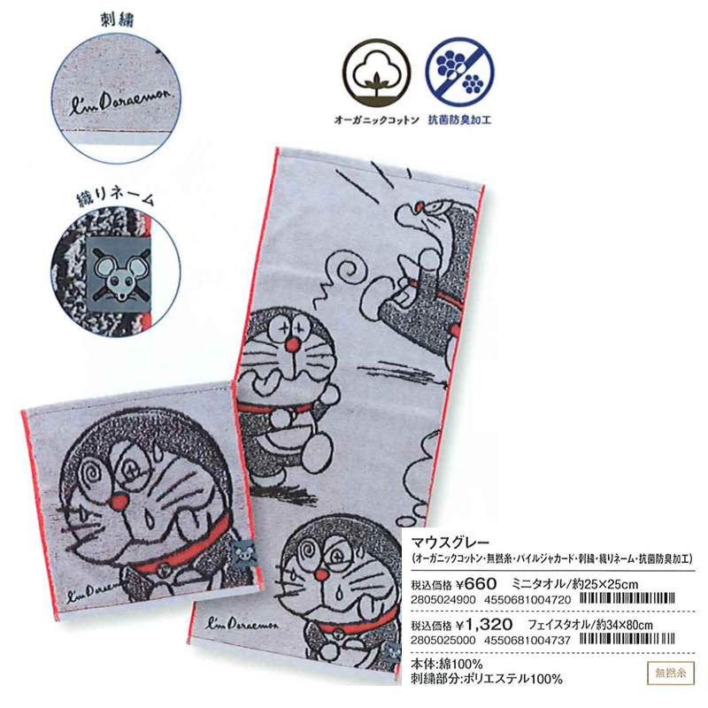 【ドラえもん】マウスグレー ミニタオル&フェイスタオル