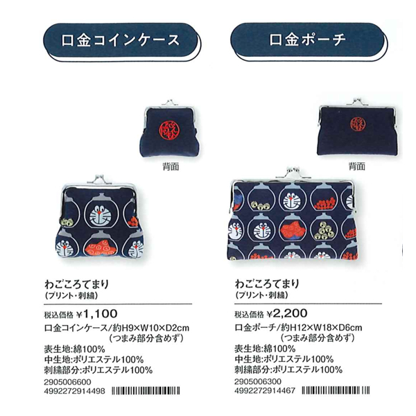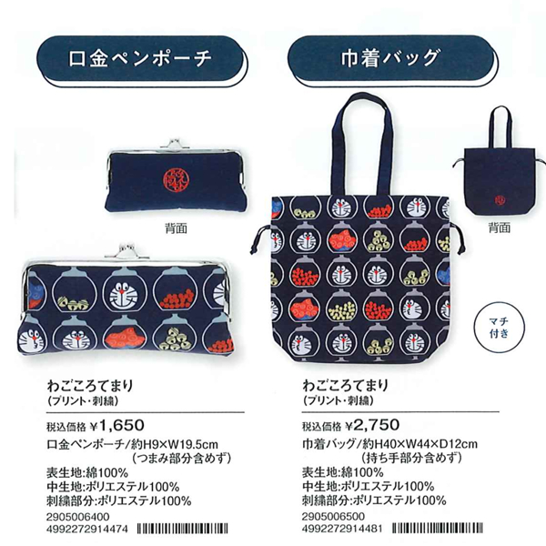 【ドラえもん】わごころてまり 口金コインケース&ポーチ&ペンケース&巾着トートバッグ 和柄