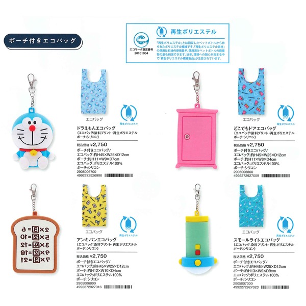サイズ | エコバッグ:約H45×W25×D12cm 《ポーチ》 【ドラえもん】約H11×W9×D7cm 【どこでもドア】約H11×W8×D4cm 【アンキパン】約H12×W10×D4cm 【スモールライト】約H13×W9×D9cm |