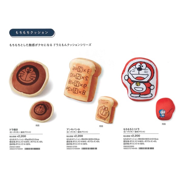 もちもちとした触感がクセになるドラえもんクッションシリーズ。