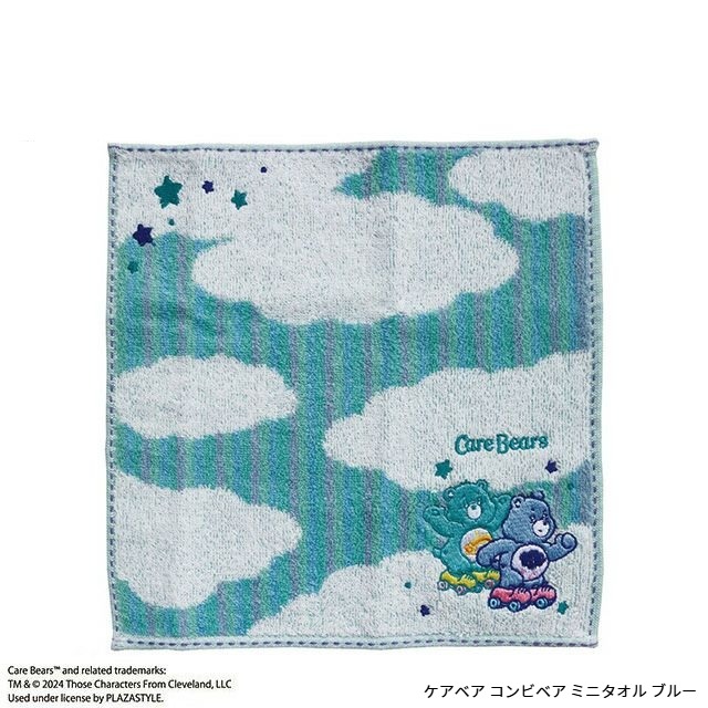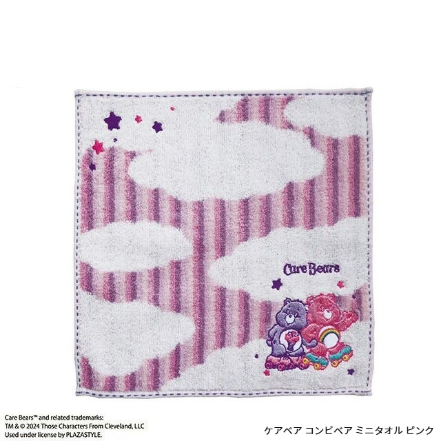 雲のデザインにケアベアと星の刺繍が入ったタオルです。