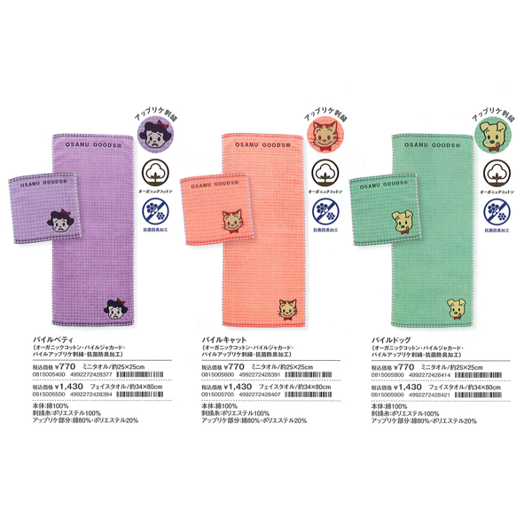 【OSAMU GOODS】オサムグッズ パイル ミニタオル&フェイスタオル 抗菌防臭加工
