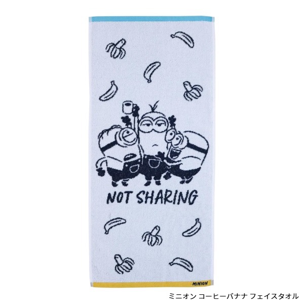 モノクロのミニオンたちがバナナにかこまれたタオル!フェイスタオルやエコバッグの展開もありますので揃えても可愛い♪