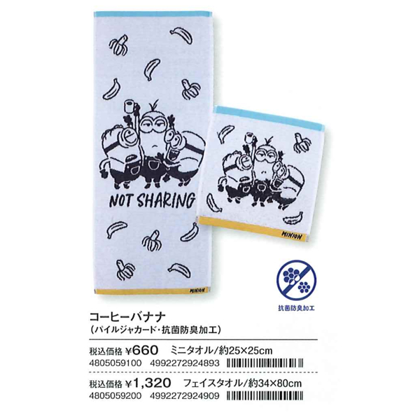【ミニオン】コーヒーバナナ ミニタオル&フェイスタオル 防菌防臭加工