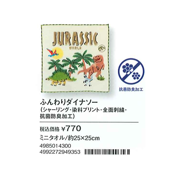 【ジュラシック・ワールド】キュート&ふんわりダイナソー ミニタオル&フェイスタオル 恐竜 抗菌防臭加工