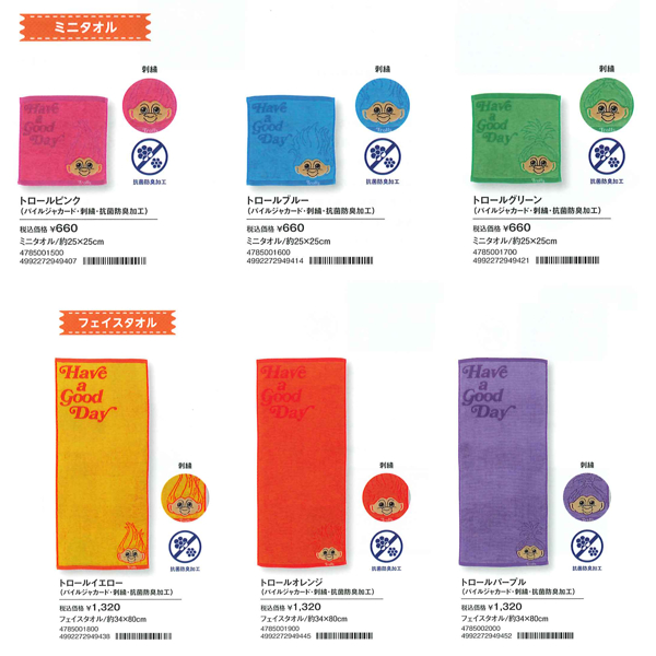 【トロールズ】ミニタオル&フェイスタオル 抗菌防臭加工