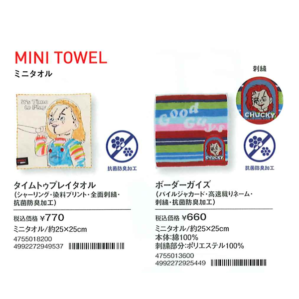 【チャッキー】ミニタオル 抗菌防臭加工
