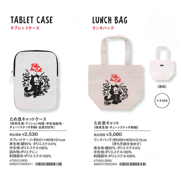 【フィリックス】ため息キャット タブレットケース&ミニバッグ ランチバッグ