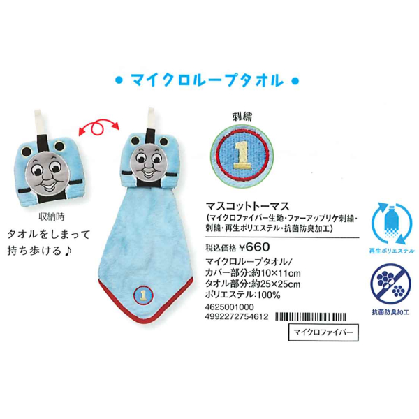 【きかんしゃトーマス】マスコットトーマス ループタオル マイクロファイバー 抗菌防臭加工
