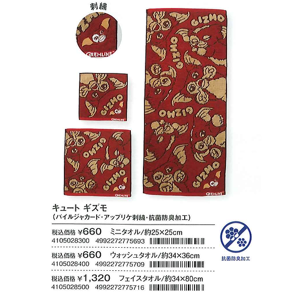 【グレムリン】キュートギズモ ミニタオル&ウォッシュタオル&フェイスタオル 防菌防臭加工