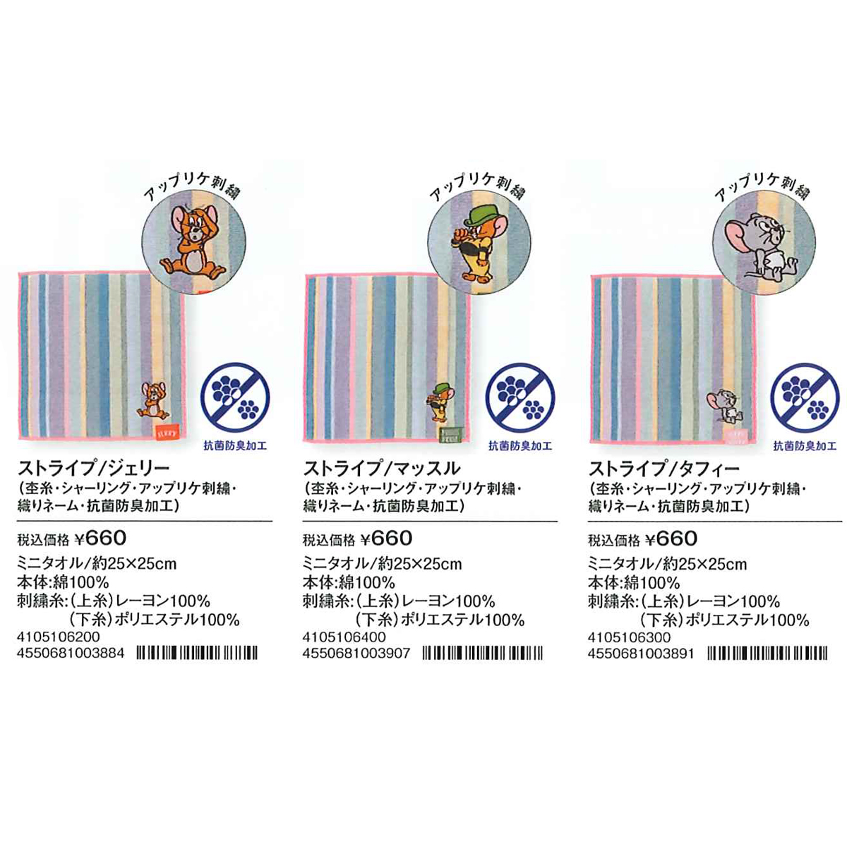 【TOM&JERRY】トムとジェリー ストライプ ミニタオル 防菌防臭加工
