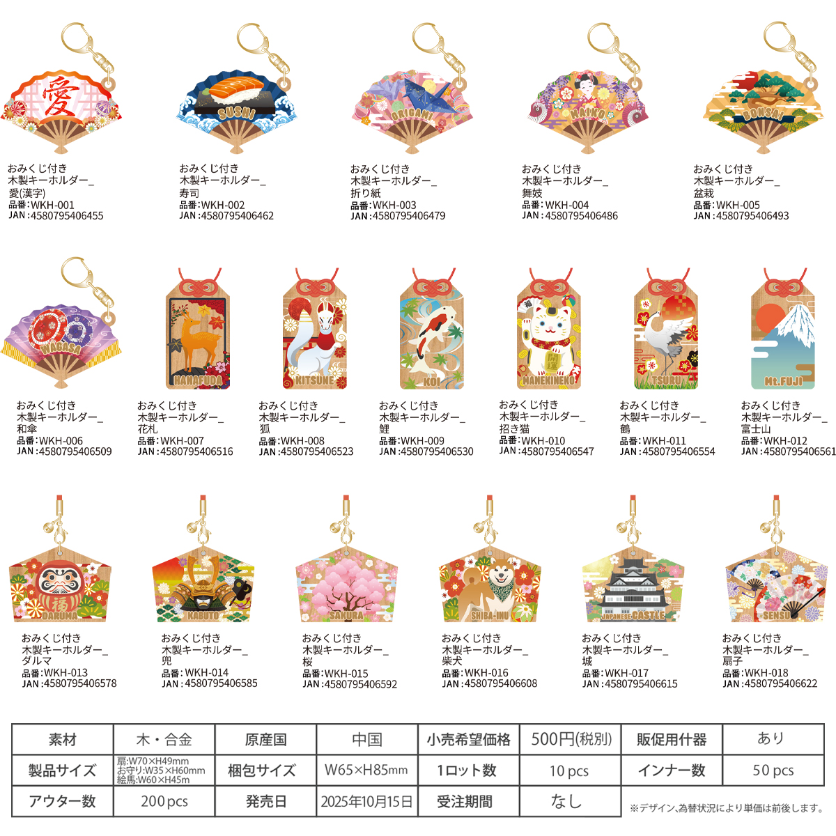 | サイズ | 扇:W70×H49mm お守り:W35×H60mm 絵馬:W60×H45mm 梱包サイズ:W65×H85mm |