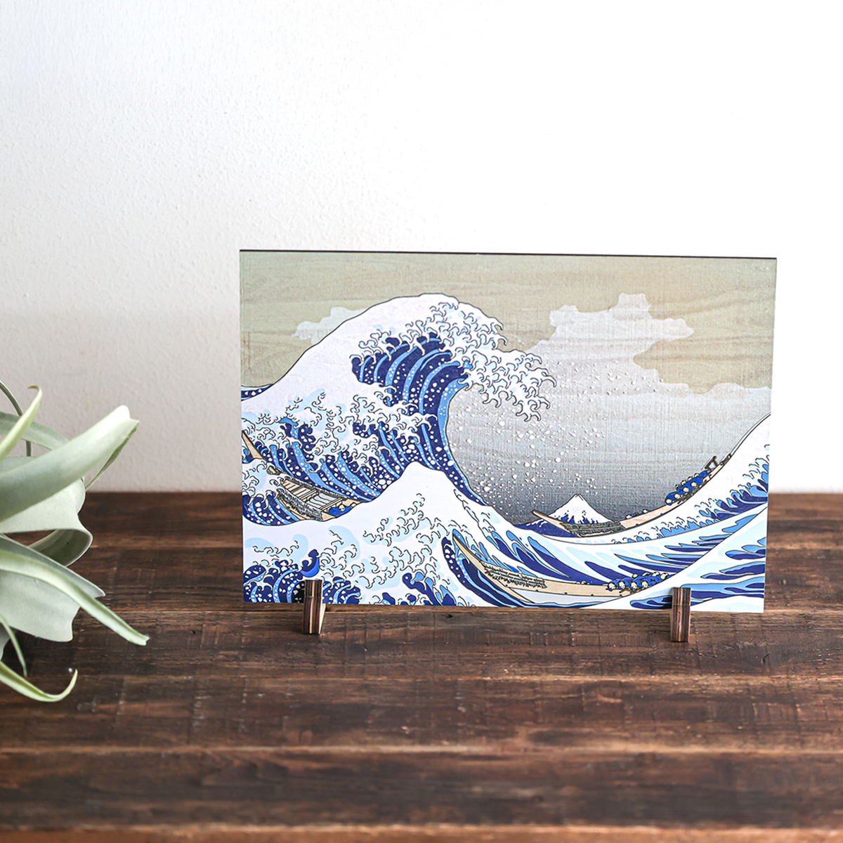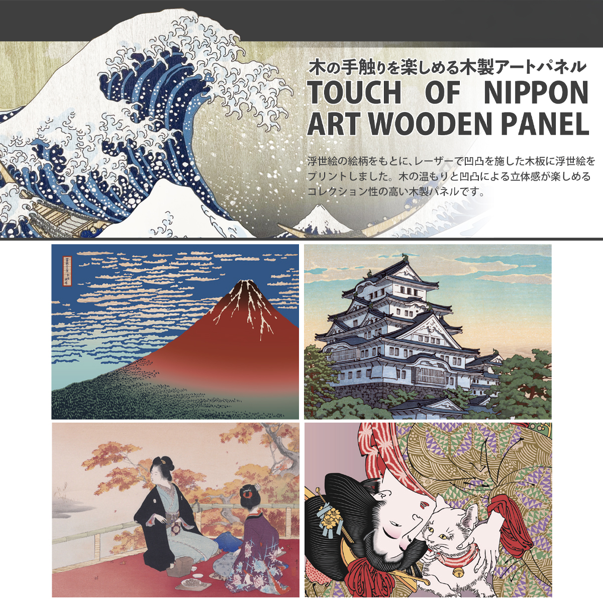 浮世絵の絵柄をもとに、レーザーで凹凸を施した木板に浮世絵をプリントしました。