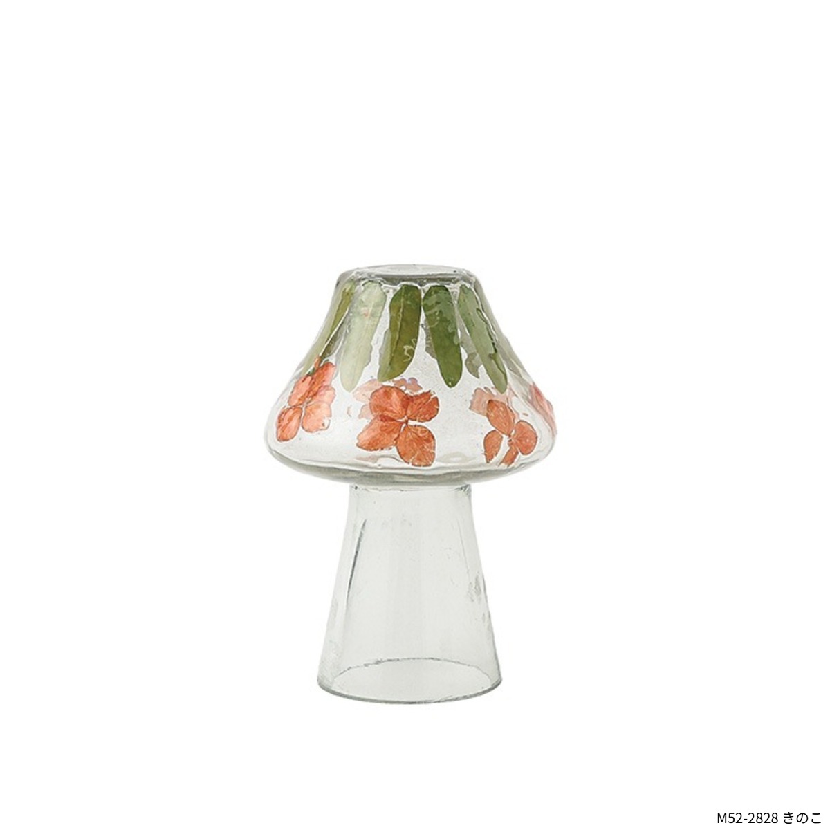 本物の植物を丁寧に閉じ込めた、標本のようなガラスのフラワーベース。