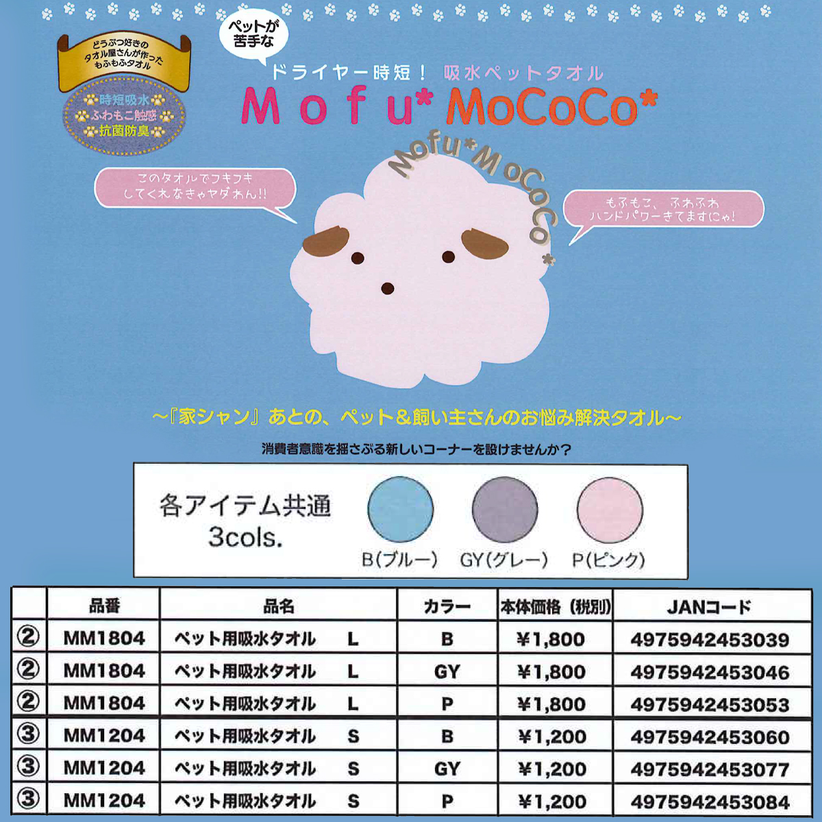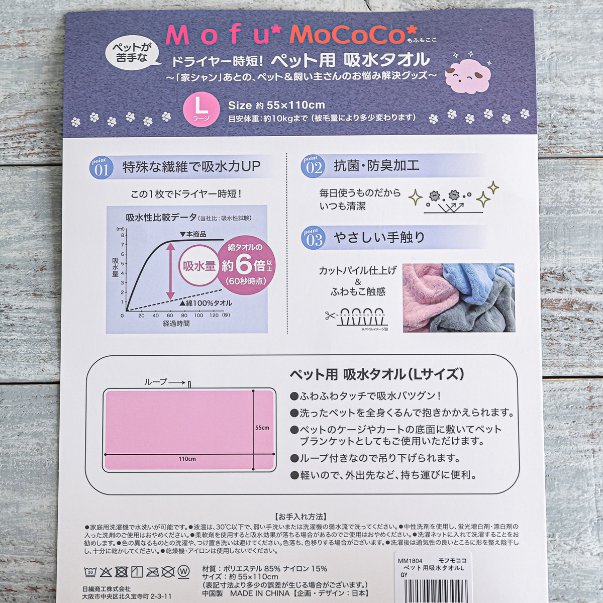【Mofu*MoCoCo】モフモココ 吸水ペットタオル L・Sサイズ