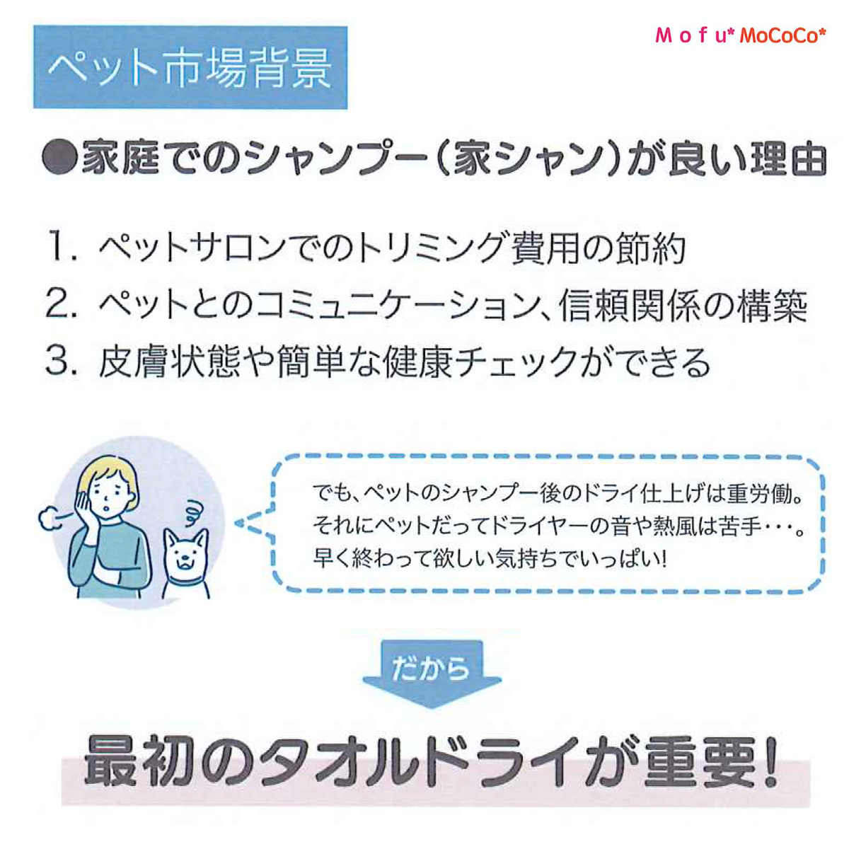 家シャンのあとのペット&飼い主さんのお悩み解決タオル