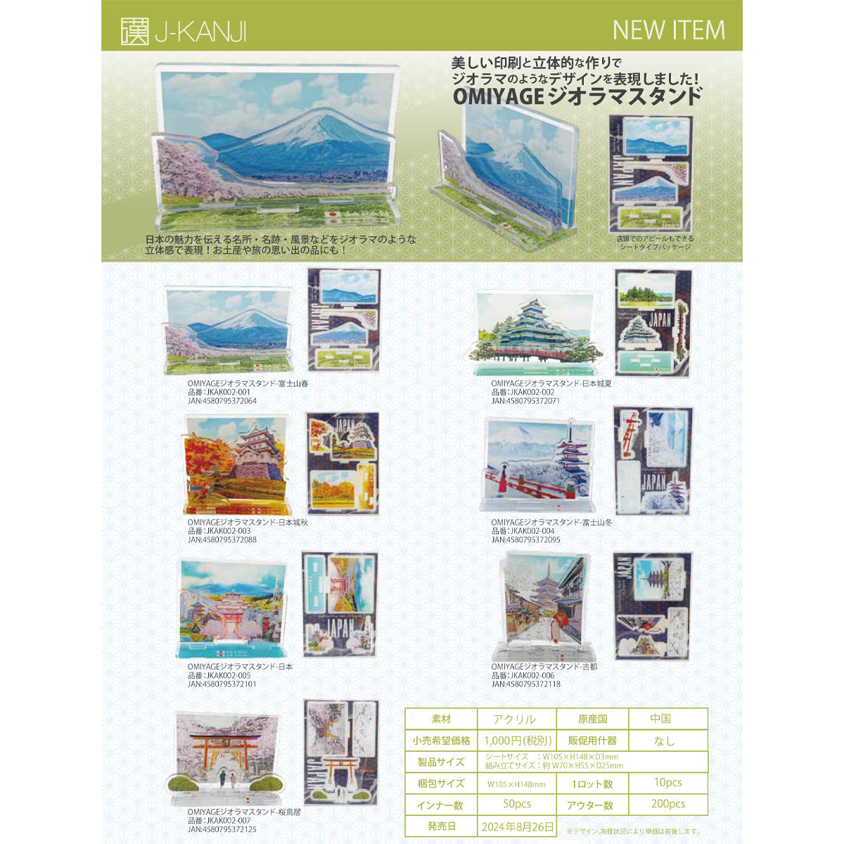 【J-KANJI】OMIYAGE ジオラマスタンド 日本 お土産 インバウンド