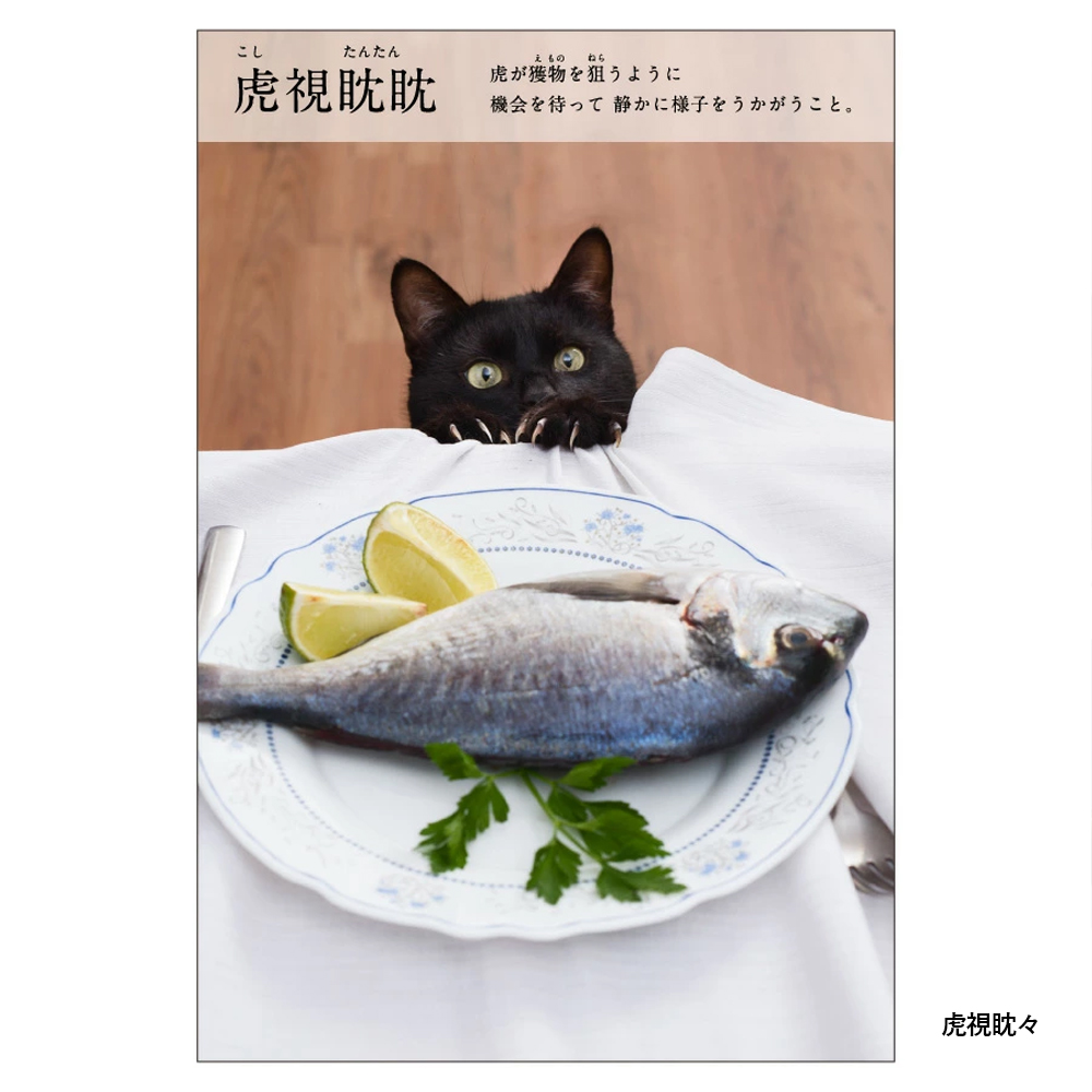 猫と四字熟語が組み合わせがクスッと笑えるポストカードです。