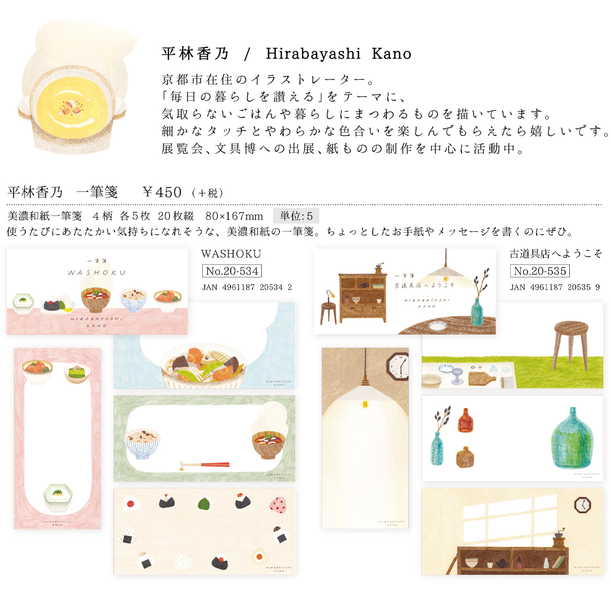 | サイズ | 4柄 各5枚 20枚綴 80×167mm |