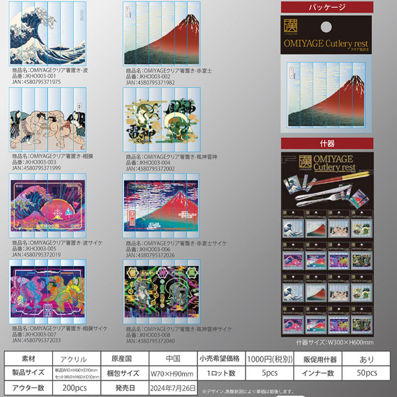 【J-KANJI】OMOYAGE クリア箸置き 日本 お土産 インバウンド