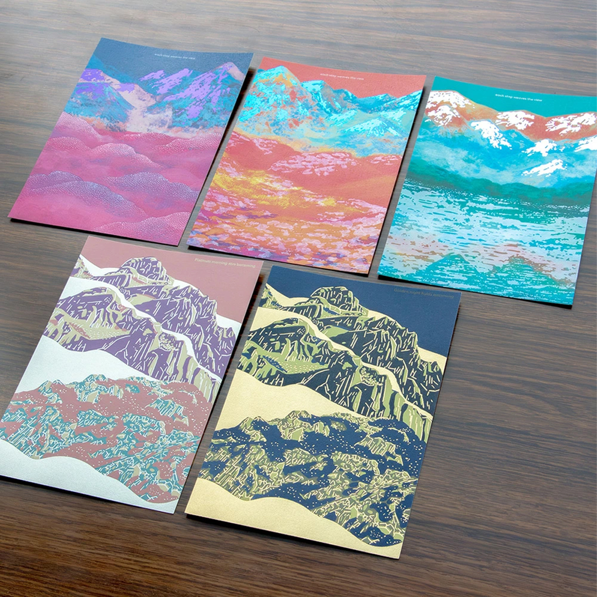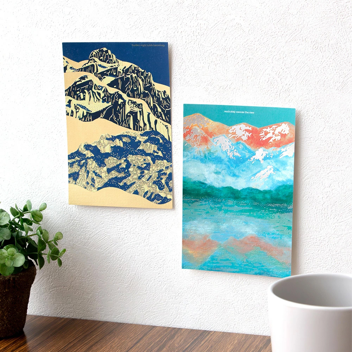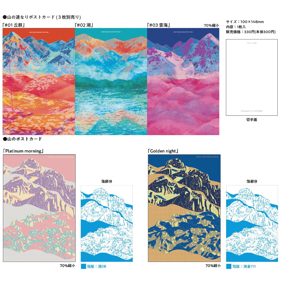 【ROKKAKU×Yamasanka】山の連なりポストカード 箔押し 日本製