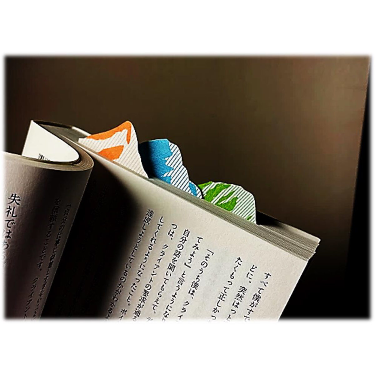 しおりの上部が山の形にダイカットされており、ノートや本に挟んだ時に見える山の姿が魅力。