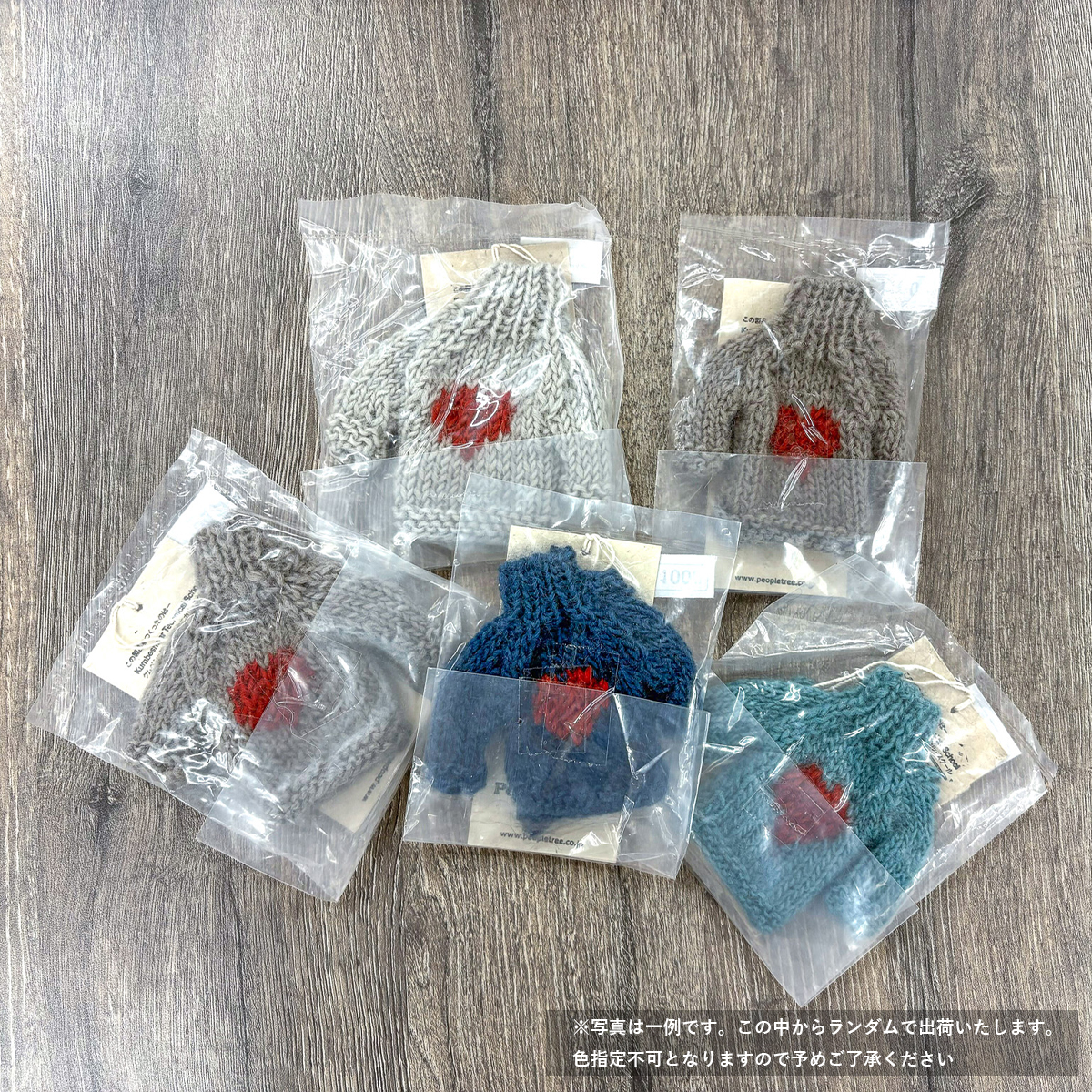 赤いハート/ストライプのみ共通のデザインで、ボディの色合いはアソートカラーになります。