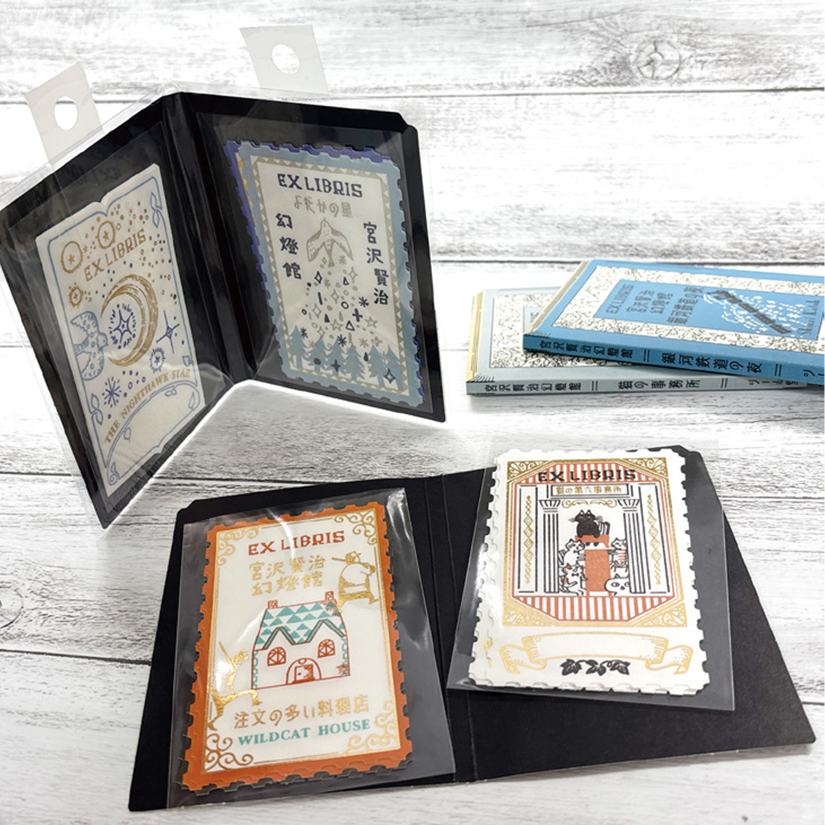 一冊の本を思わせる台紙に挟まれ、本の持ち主を表す “蔵書票” という小さな文化のぬくもりを伝えます。