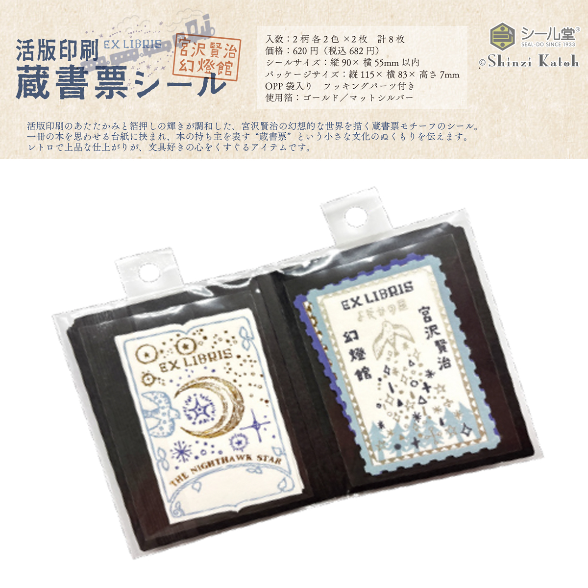 《11月21日(金)発売・EC掲載開始日:11月14日(金)》【シール堂】Shinzi Katoh 宮沢賢治幻燈館 活版印刷 蔵書票シール
