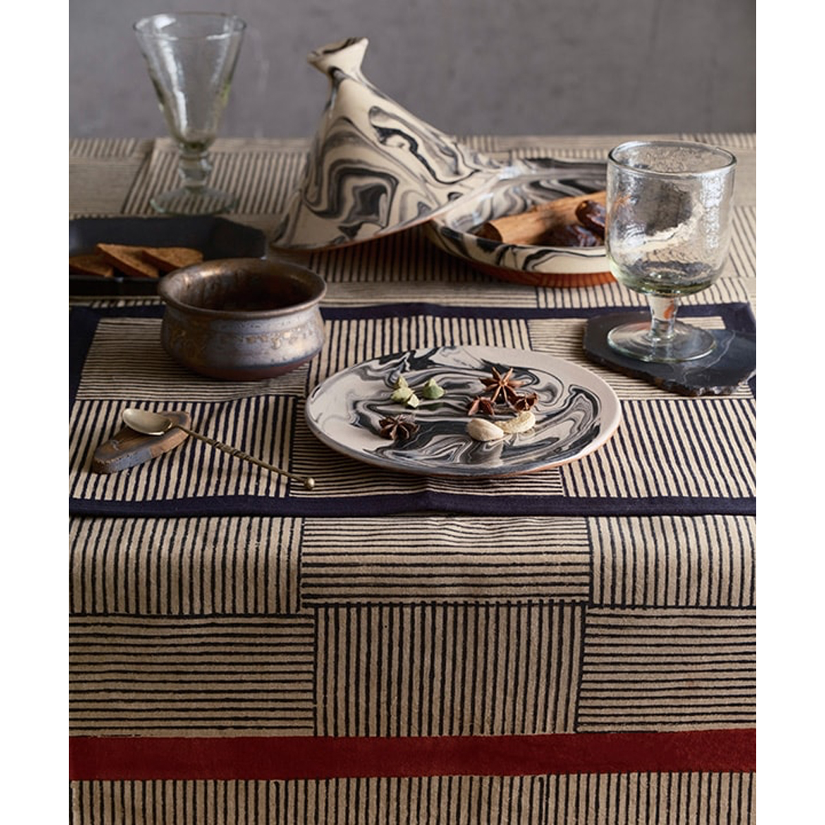 インドの伝統的なブロックプリント技法で施された模様が印象的なテーブルランナー。 落ち着いたカラーとナチュラルな布地の質感が、ダイニングを上品に演出します。 季節を問わず使いやすく、店舗ディスプレイ用としても存在感抜群。 テーブルクロスやランチクロスとのコーディネート提案で、複数仕入れもおすすめです。