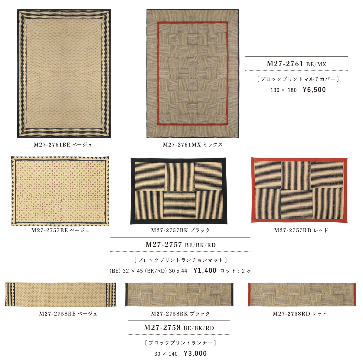 【東京かんかん】ブロックプリント マルチカバー・ランチョンマット・テーブルランナー・エプロン・キッチンクロス