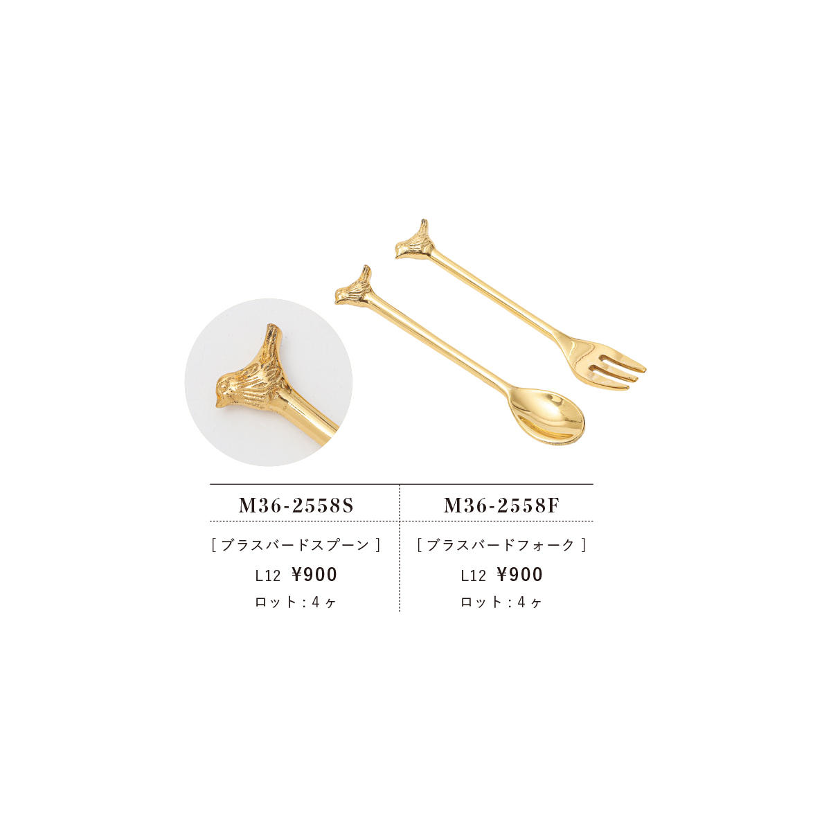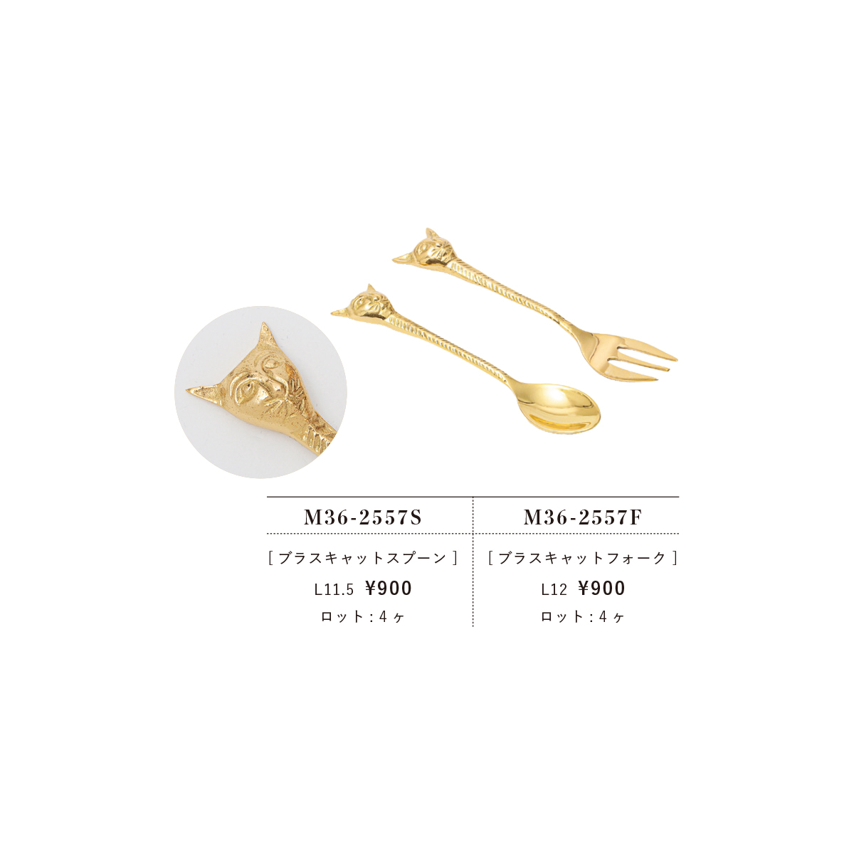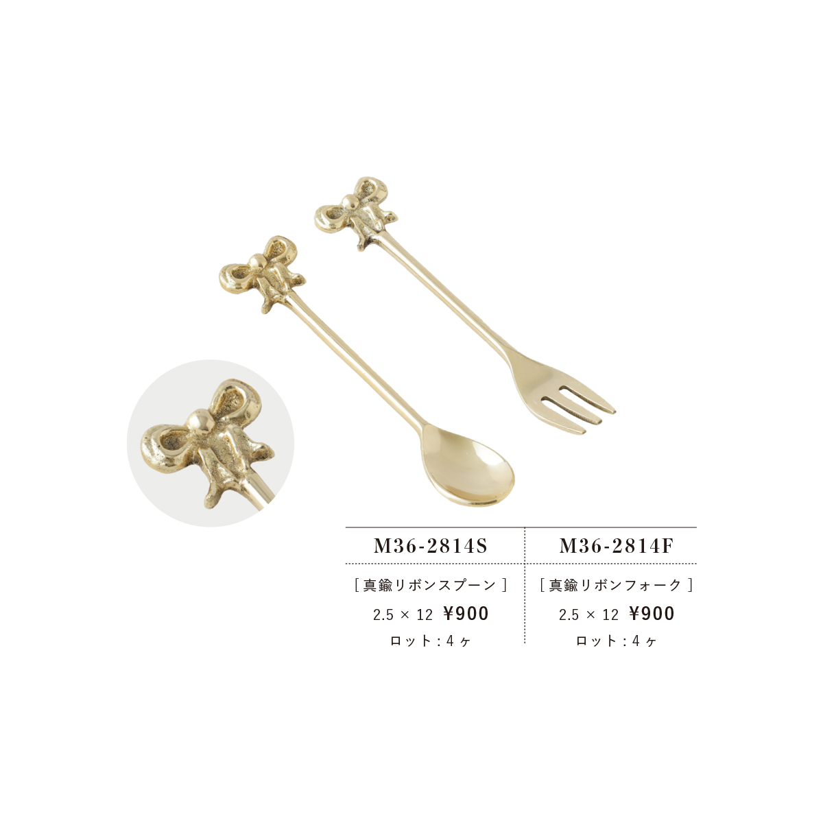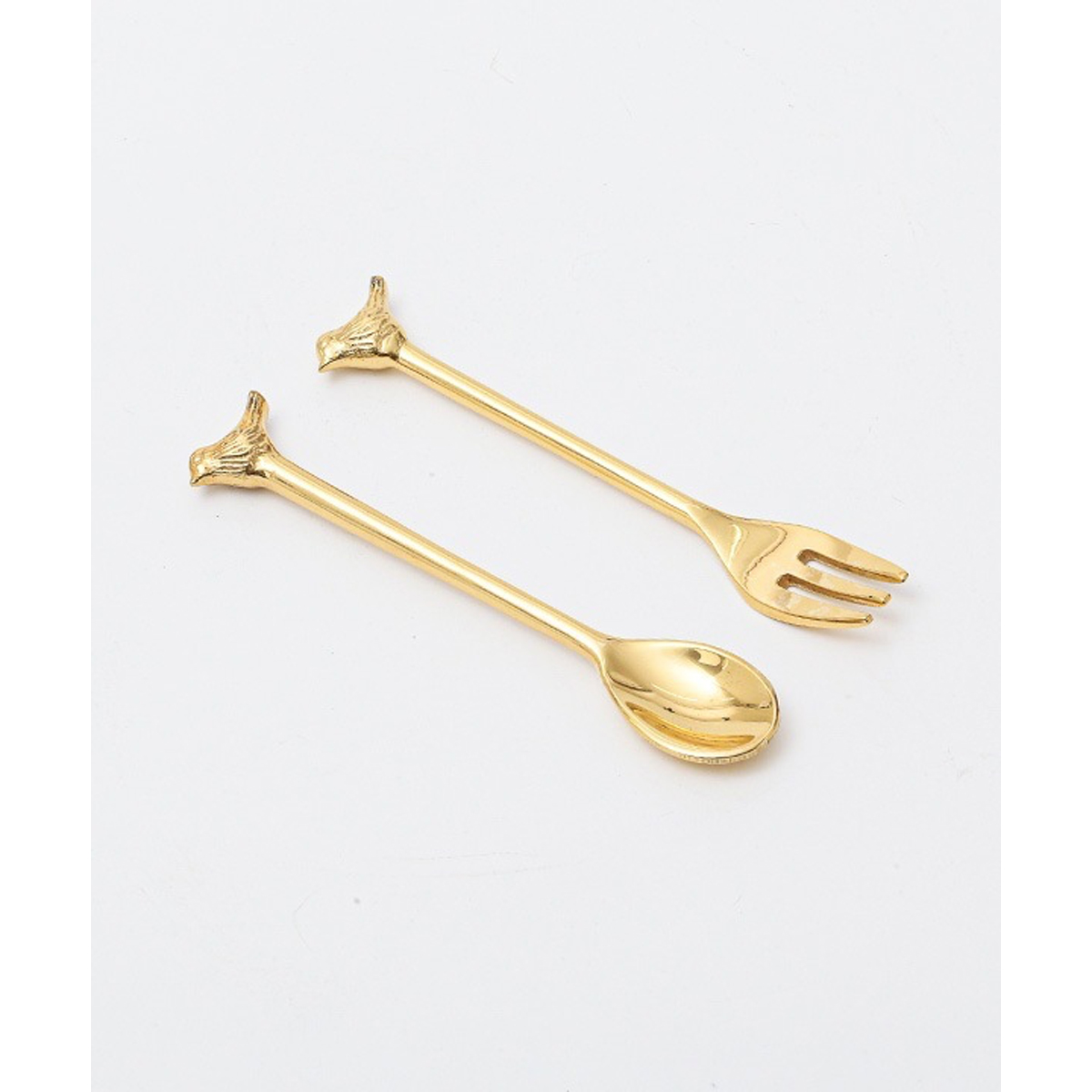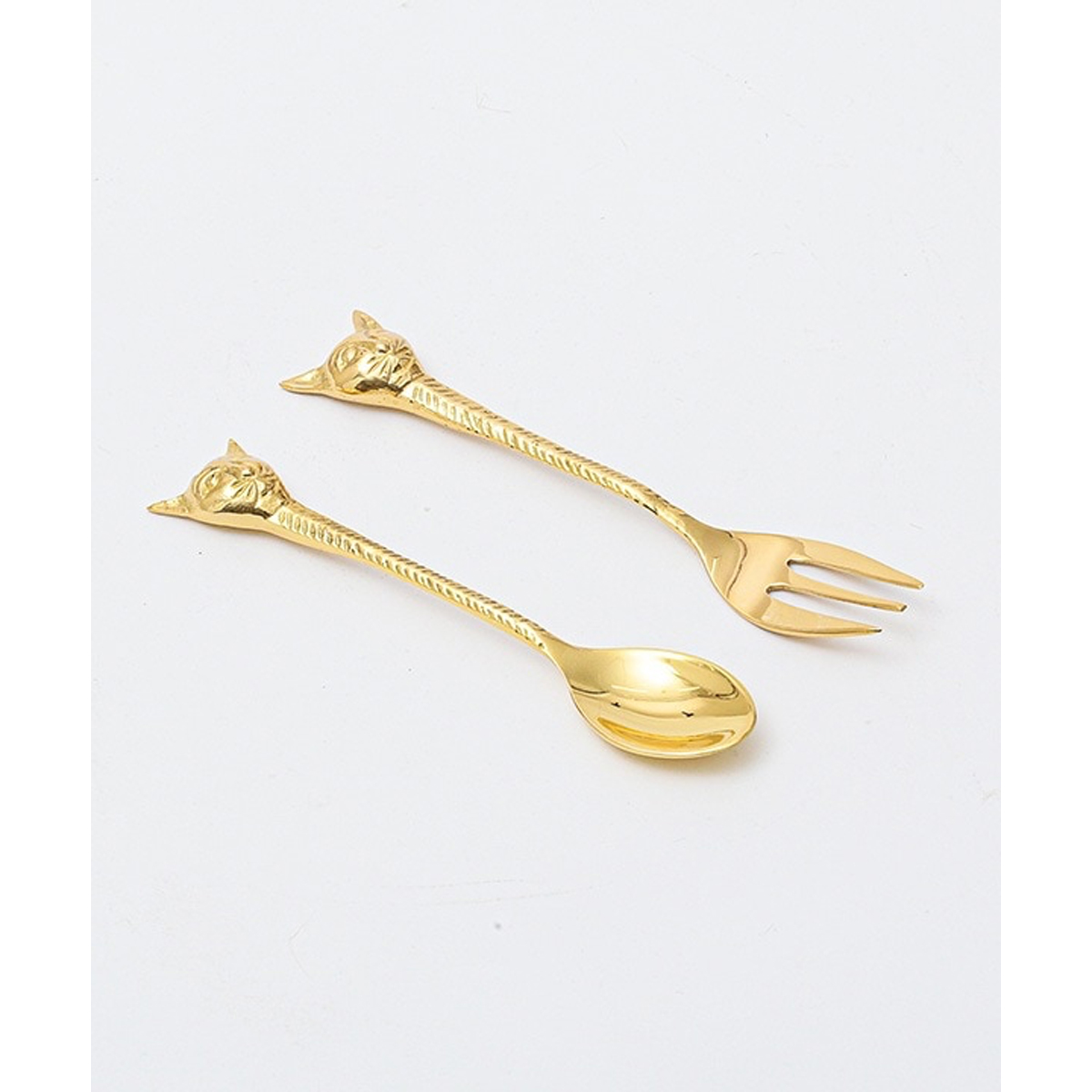 【東京かんかん】真鍮スプーン・フォーク ブラス製 ネコ 鳥 動物 リボン