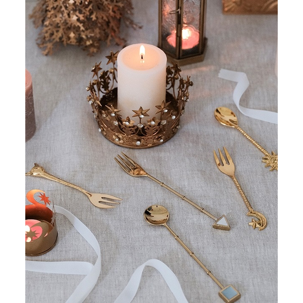 先端にあしらわれた動物やリボンのモチーフが遊び心を添え、テーブルをさりげなく彩ります。経年変化も味わえる、長く使いたい暮らしの道具です。カトラリーと箸置きでセットにして贈り物にもおすすめです。
