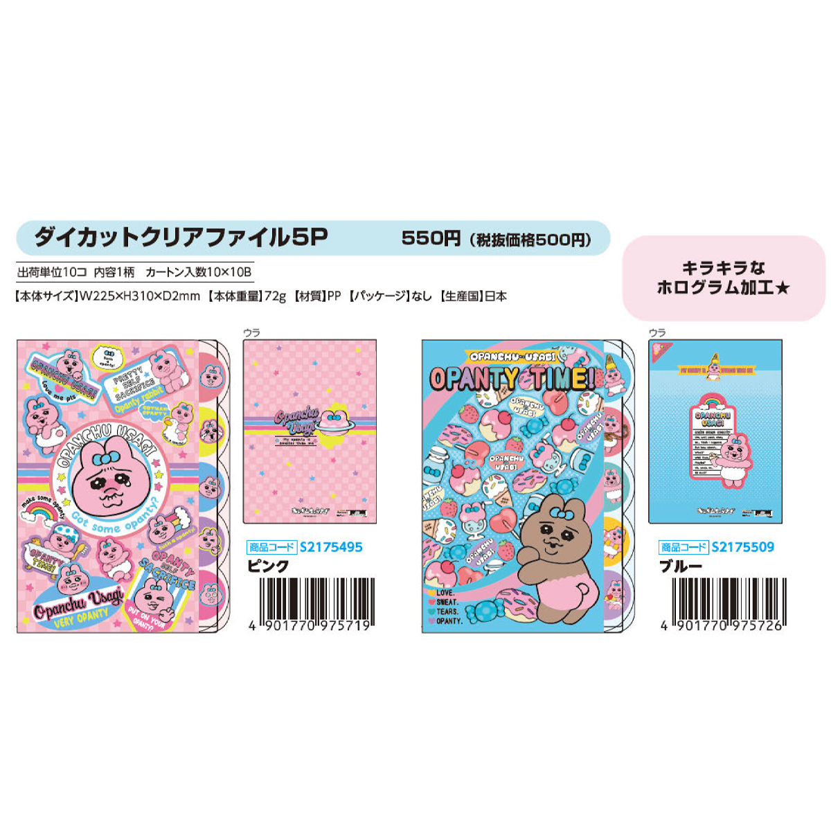 ダイカットクリアファイル5P おぱんちゅうさぎ 文具 ステーショナリー 日本製