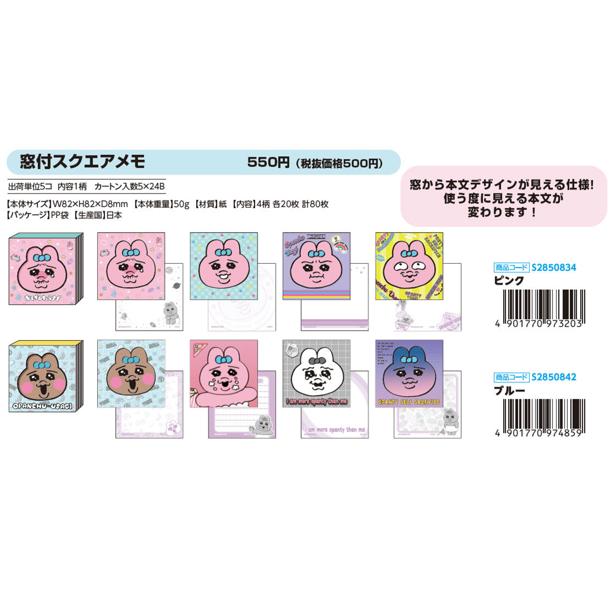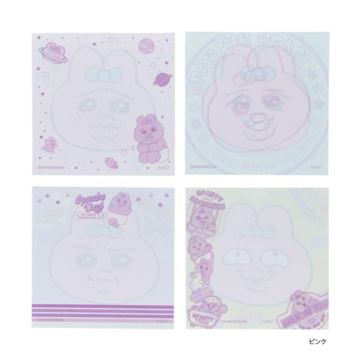 窓付スクエアメモ おぱんちゅうさぎ 4柄 文具 かわいい 学校や職場での伝言にも 日本製