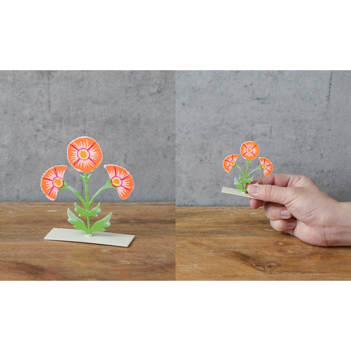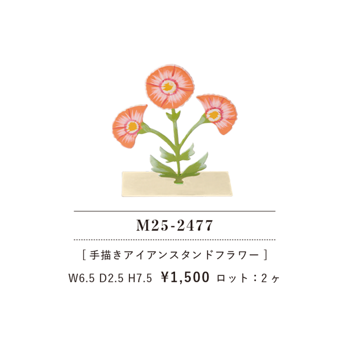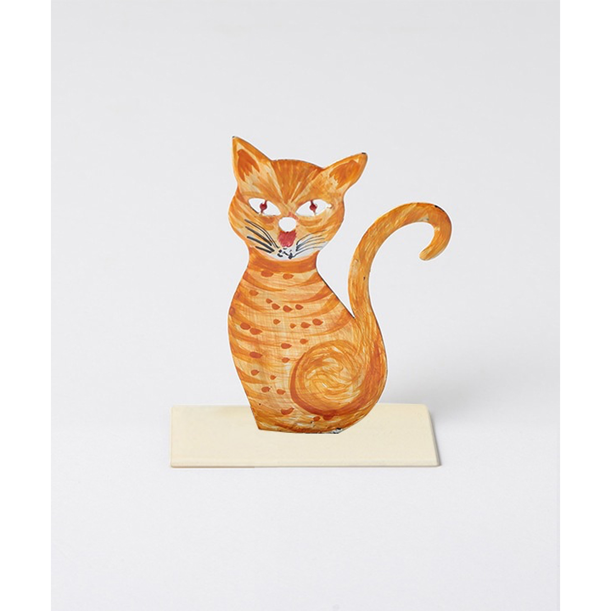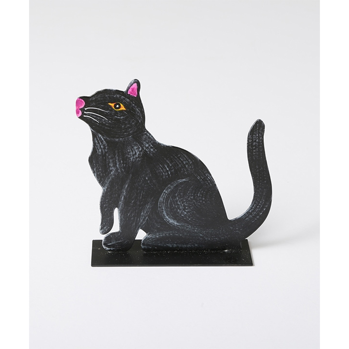 鉄板をモチーフの形にカットしハンドペイントで装飾したフラットなスタンド式のオブジェ。