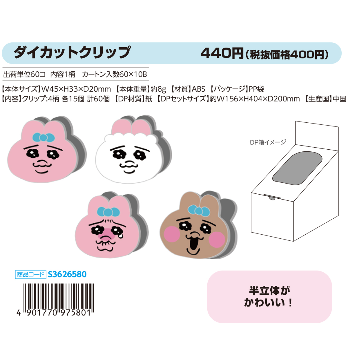 【内容】クリップ:4柄 各15個 計60個