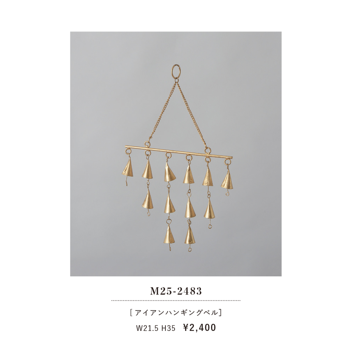 | サイズ | M35-2694:幅50×高さ50cm M35-2693:幅50×高さ50cm M35-2692:幅33×高さ50cm M36-2742:長さ54cm (ベル大直径7×高さ11cm/ベル小直径5.5×高さ10cm) M25-2482:幅22×高さ38cm M25-2483:幅21.5×高さ35cm |