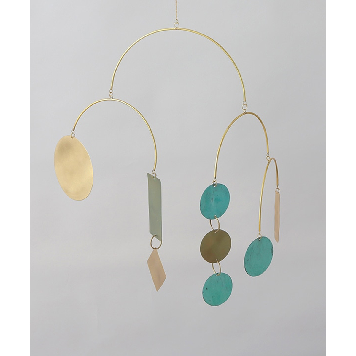 アートなデザインがおしゃれな、アイアンにゴールドメッキをした素材のモビールです。