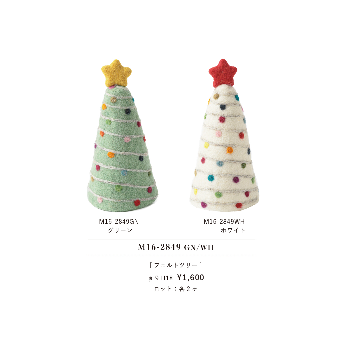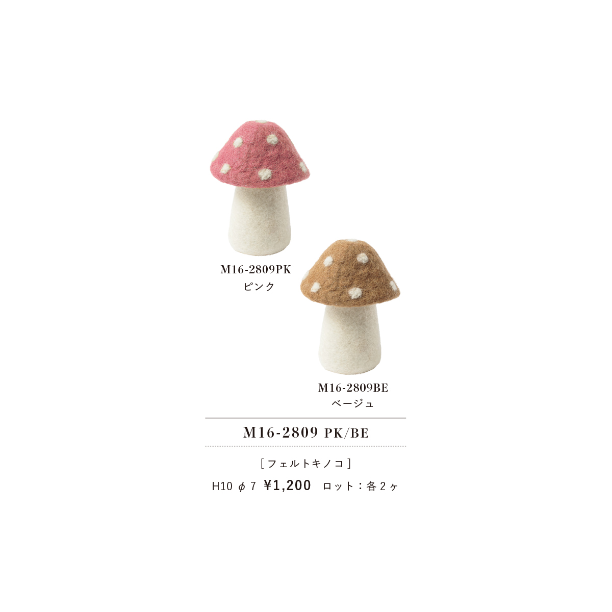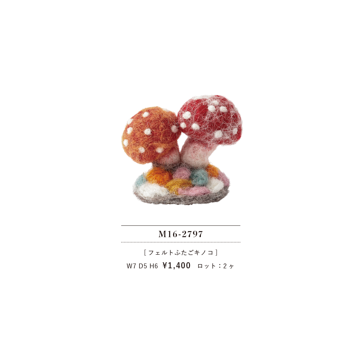 | サイズ | バード:Φ18 H44 フェルトふたごキノコ:W7 D5 H6 フェルトキノコ:H10 φ7 ひつじ:W17 D8 H15 フェルトツリー グリーン・ホワイト:φ9 H18 M16-2510Sフェルトツリー:Φ8 H20 フェルトノーム:Φ6 H16 フェルトスノーマン:Φ6 H17 |
