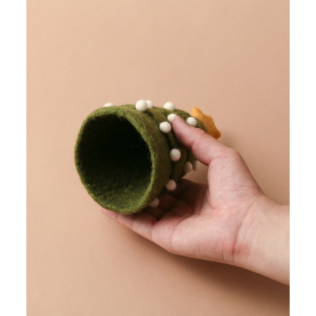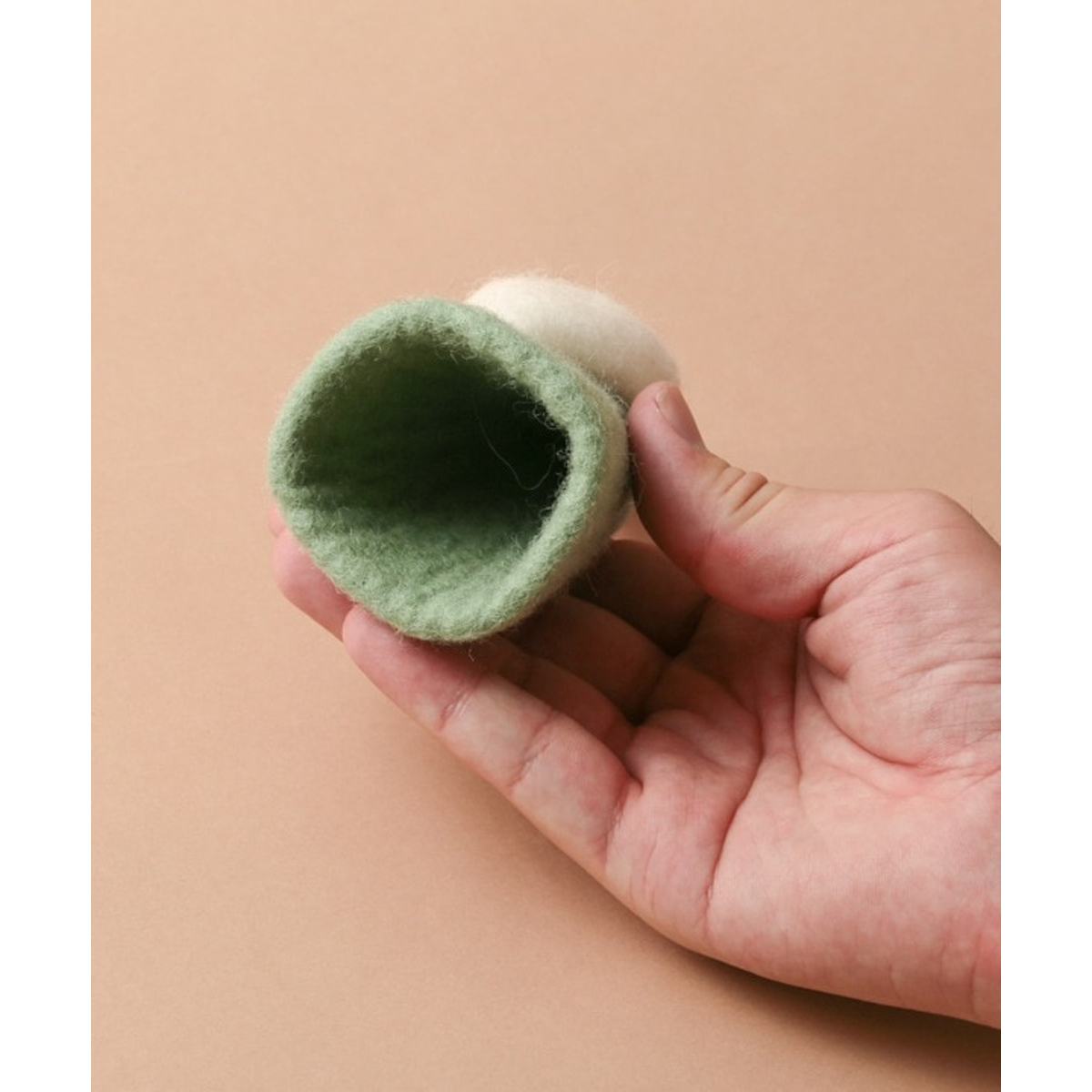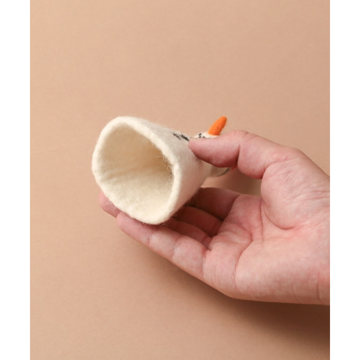 ニュージーランド産のウールを使用しており、柔らかな仕上がりになっています。どこか愛らしい佇まいは、ナチュラルでほっこりした雰囲気を演出します。玄関のシューズボックス上やリビングのサイドテーブル、子供部屋の棚など、様々なシーンのオブジェとして最適です。さらに、季節やイベントに合わせてミニタペストリーやフェルトフラワーと組み合わせれば、ディスプレイの幅が一層広がります。