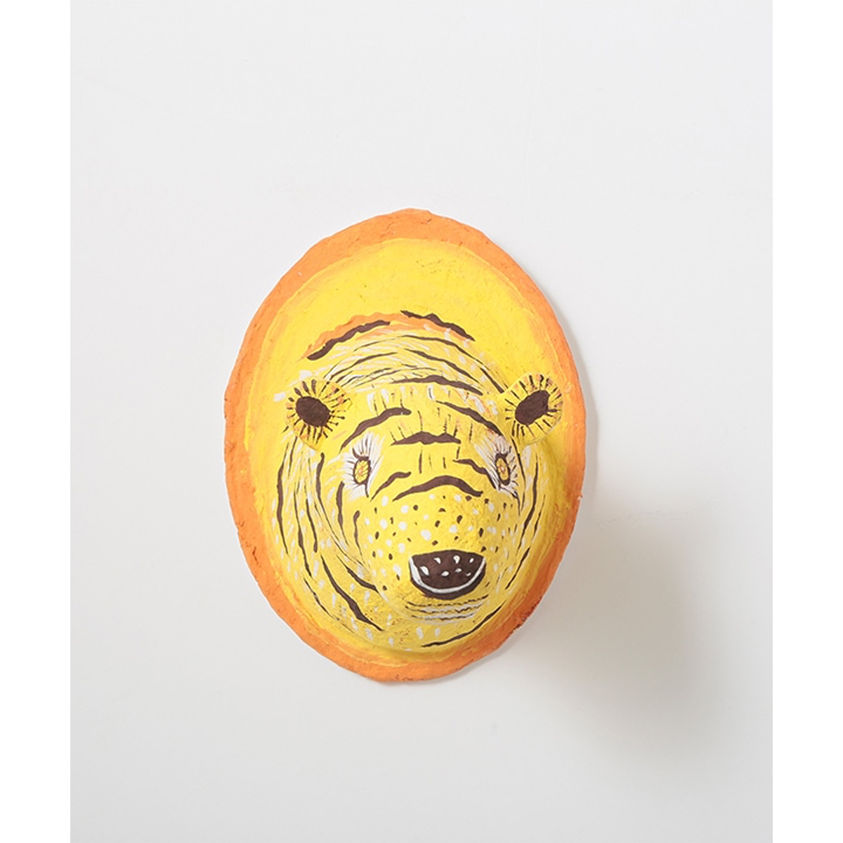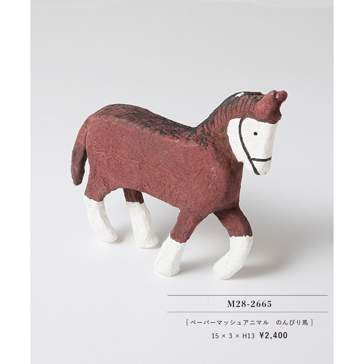 手描きで描かれた、ゆるっとした表情がなんとも言えない可愛さのペーパーマッシュの動物の置物と壁掛け。