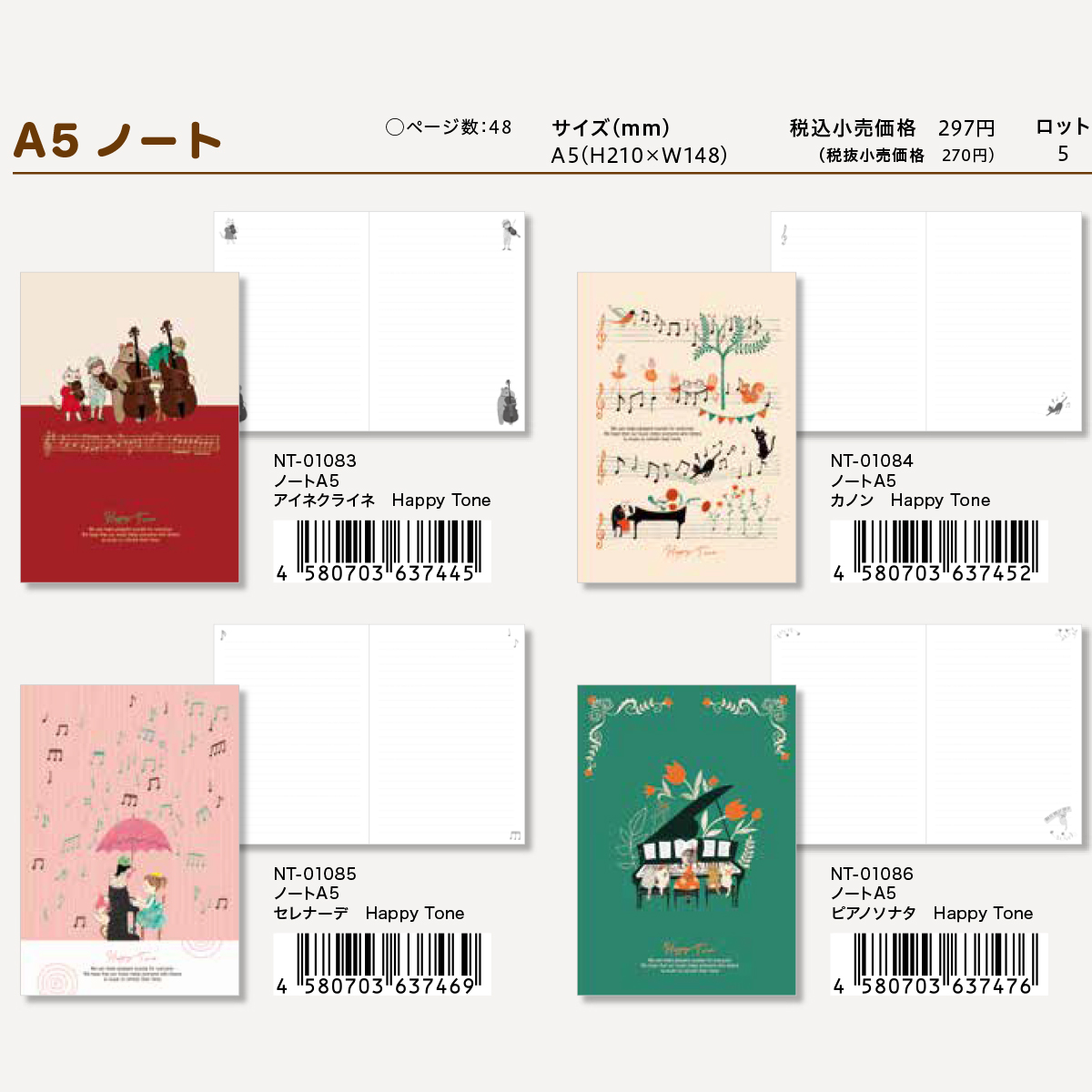 【日本製】A5ノート Happy Tone ピアノ 音楽